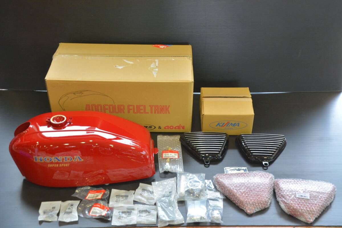 > アゲイン CB400F 外装フルセット PMC&キジマ純正サイドカバー4個 MRS/タンクキャップ&ロック&ゲージ付きキャップ 純正パーツ多数付き