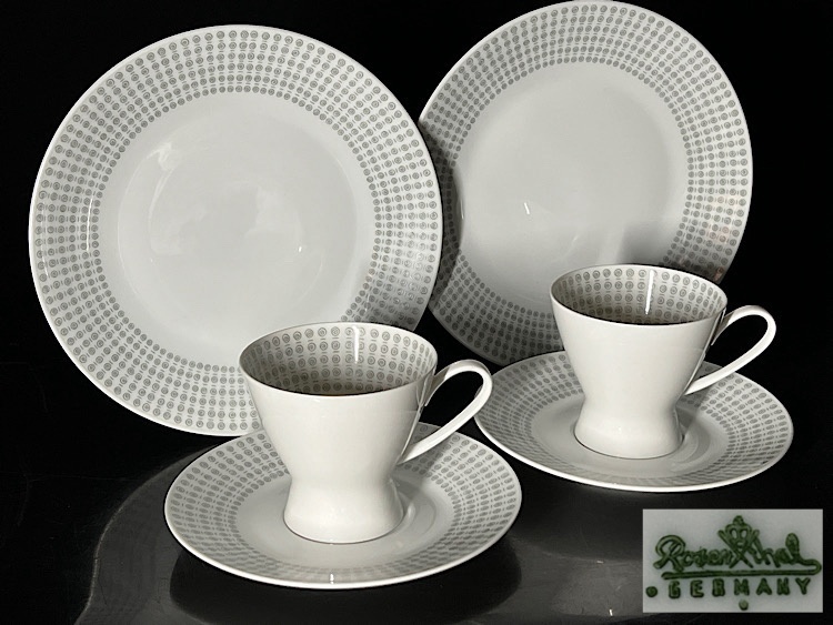 - 【瑞】ローゼンタール 渦柄 カップ&ソーサー2客セット + プレート 2枚