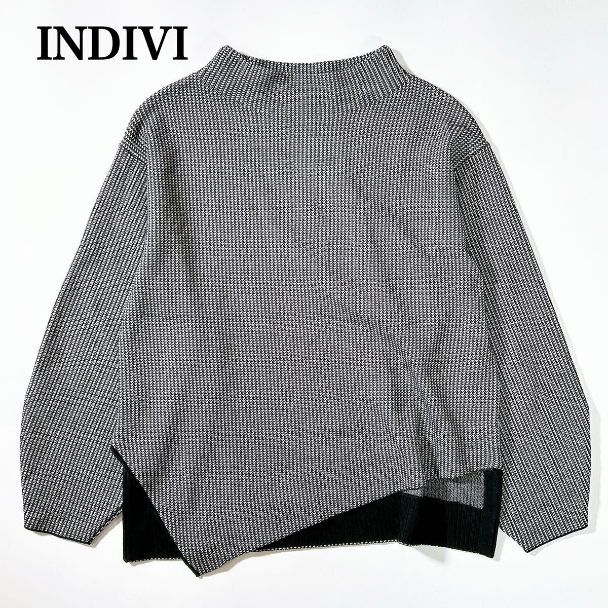 > INDIVI インディヴィ ニット プルオーバー アシンメトリー 長袖 千鳥格子 38 M レディース C102521-102