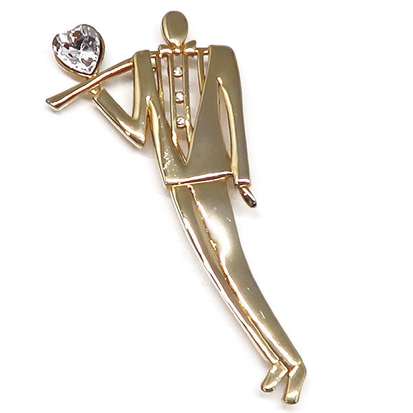 - DKG★送料無料★ ヴィンテージ ハート ボーイ ウェイター ゴールド カラー アンティーク レトロ ハート クリスタル ブローチ 94