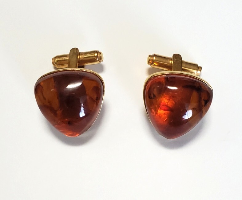 - 超レア 琥珀 4ЯK刻印 コハク カフスボタン メンズ アクセサリー 11g きれいめ