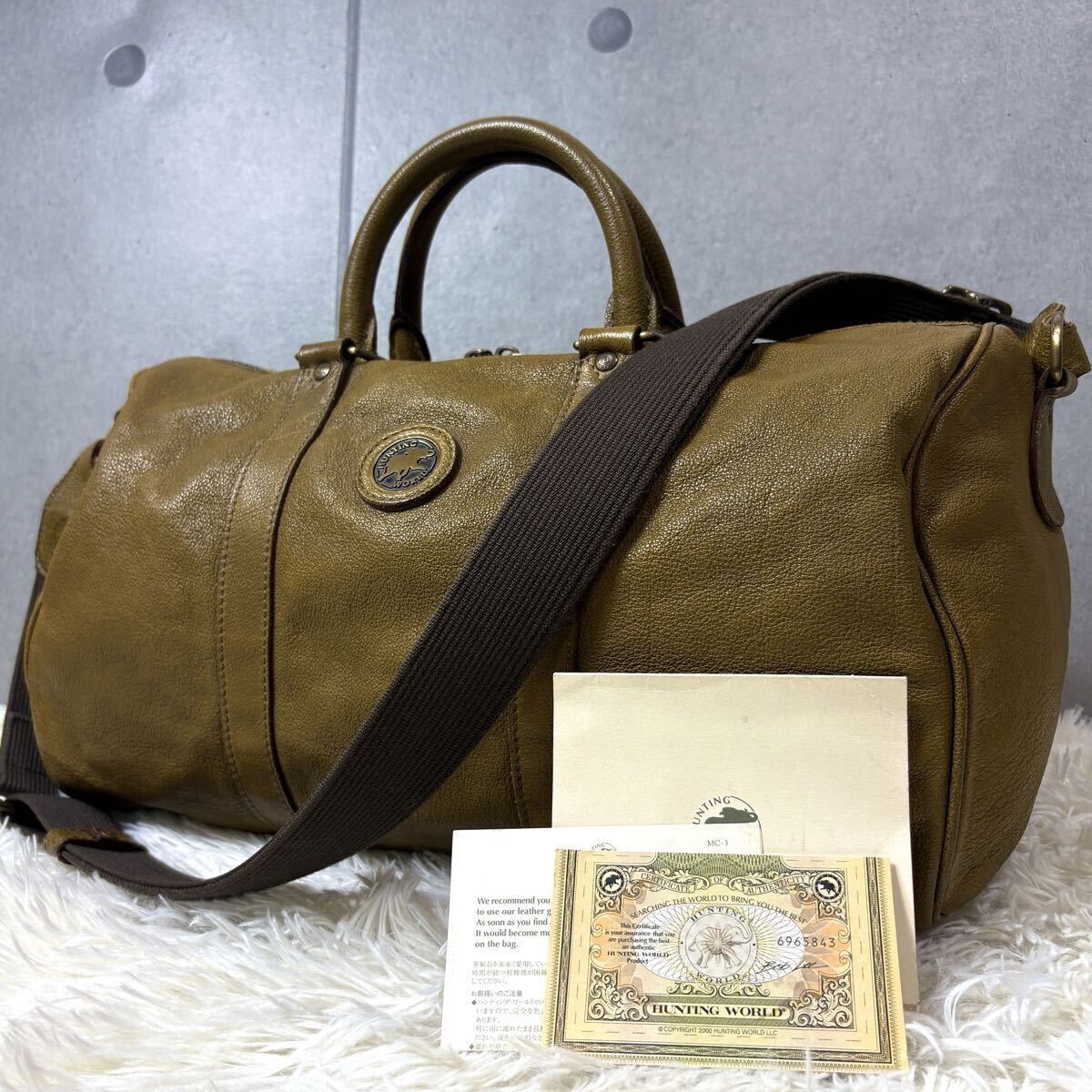 - 美品/世界50個限定 ●HUNTING WORLD ハンティングワールド メンズ ボストンバッグ ダッフル ショルダー 2way 水牛 ウォッシュドレザー