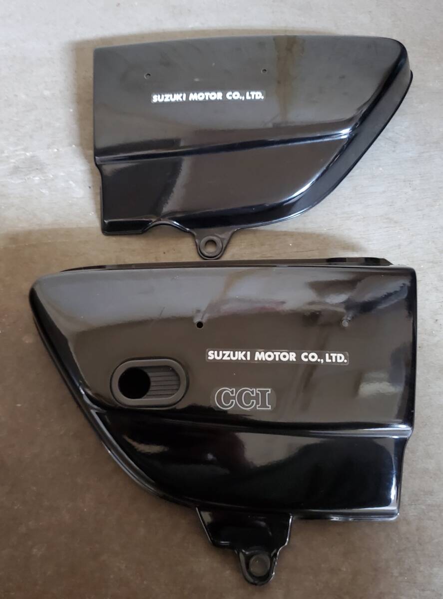 - GT380 GT550 純正 後期 サイドカバー 左右 純正Sマークグロメット付 ヒビ.ワレ.カケなし Sマーク CCI 当時物 希少品 旧車 カフェレーサー