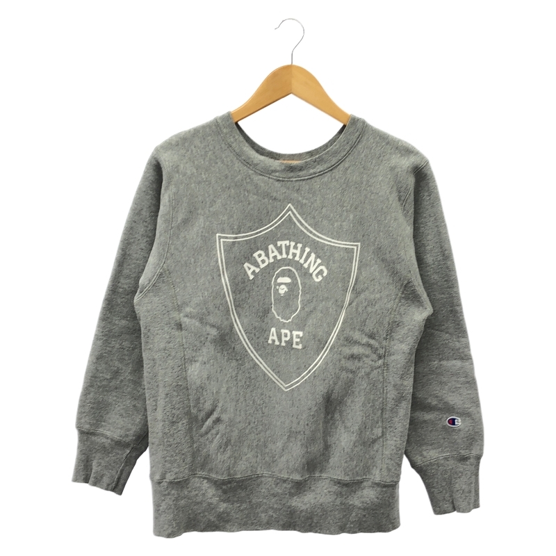- 【中古】A BATHING APE×Champion Reverse Weave Sweat Shirt M GRAY 1863-113-004 ア ベイシング エイプ チャンピオン[240092309245]