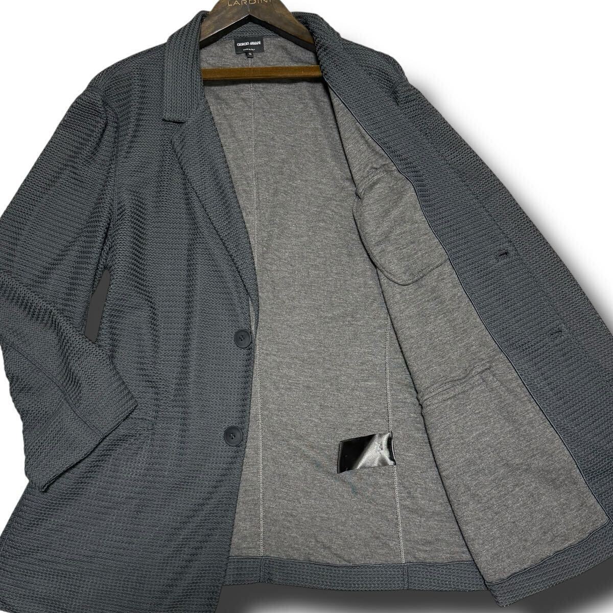 > GIORGIO ARMANI【極美品◎ XXXXXLサイズ!!】ジョルジオアルマーニ ニット テーラードジャケット 58 ワッフル編み調 切替 ストレッチ グレー