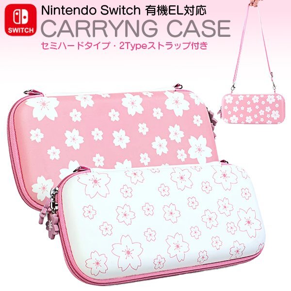 - 任天堂 スイッチ キャリングケース 桜柄 裏起毛 Nintendo Switch 新型有機ELモデル対応ストラップポーチハードケースさくらピンク送料無料