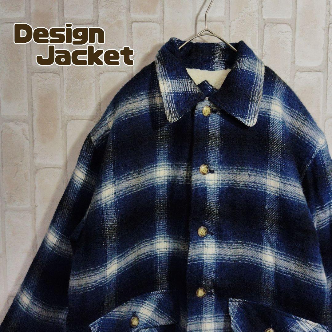 - CPOジャケット オンブレ チェック 青 ボア シャドーチェック