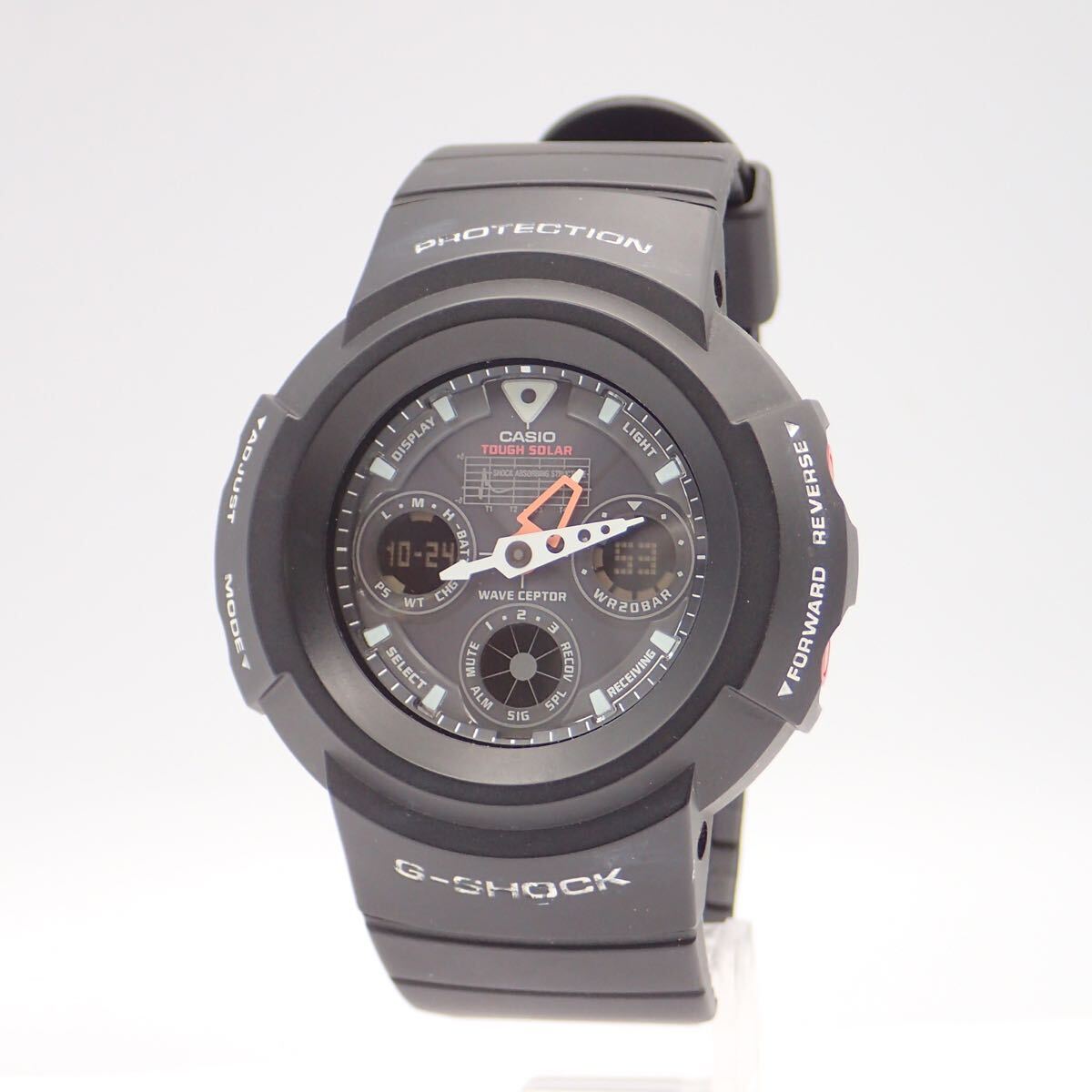 - お09301 G-SHOCK CASIO AWG-500J タフソーラー電波時計 黒 赤ボタン ジャンク