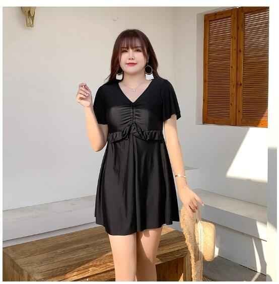 - 水着 レディース 体型カバー 水着ワンピース 海水浴 かわいい 大きいサイズ 3XL ブラック