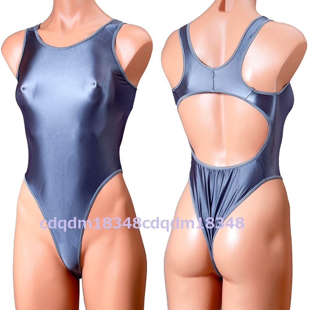 > 6321 ダークグレーカラー シャイニー ストレッチ クロッチフック仕様 ハイフォークホルター ジャンプスーツ ボディスーツ