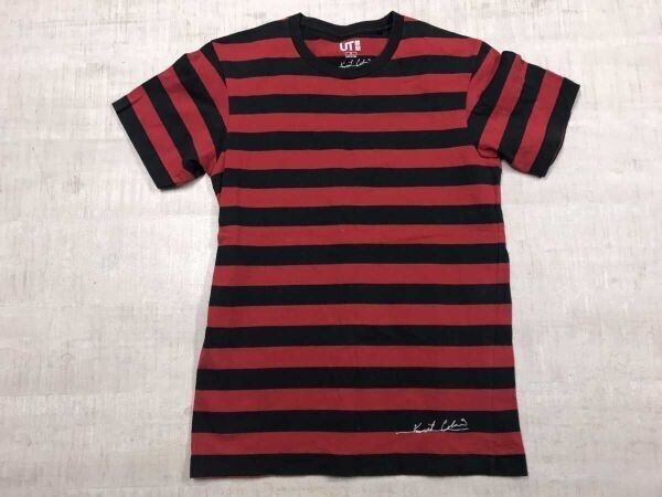 > ユニクロ UNIQLO UT カートコバーン Kurt Kobain グランジ NIRVANA ニルヴァーナ ボーダー コラボ 半袖Tシャツ カットソー メンズ S 黒 赤