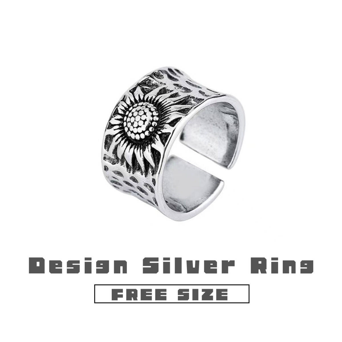 - 向日葵デザインリング 指輪 シルバー フリーサイズ サイズ調整可 メンズ レディース 男女兼用