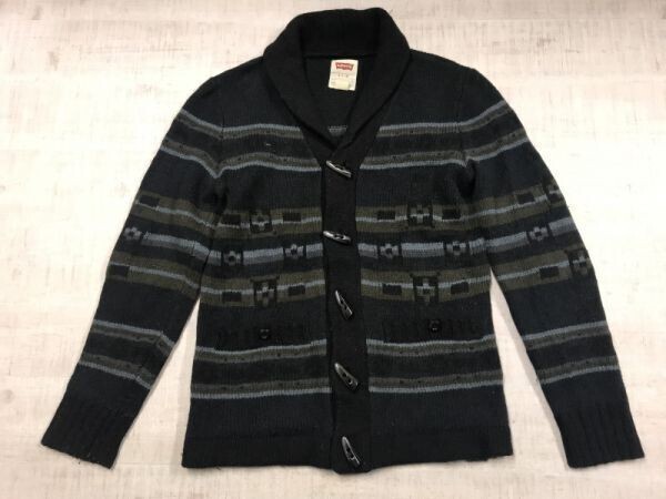 > リーバイス Levi's アメカジ ネオティブ ボーダー ジャガード トグルボタン ショールカラー ニット セーター カーディガン メンズ S 黒