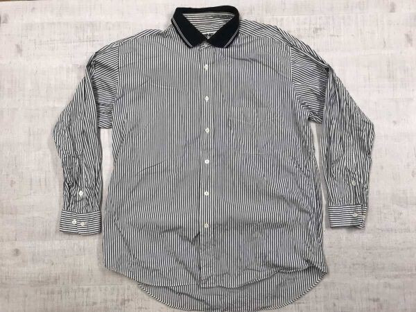 - ピン PING レトロ トラッド シック スポーツ ゴルフ 襟切替 ポロカラー ストライプ 胸ポケット 長袖シャツ メンズ コットン100% LA 白黒