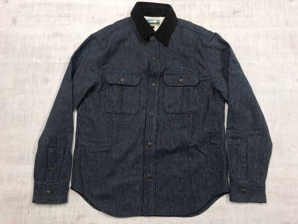 - グローバルワーク GLOBAL WORK アーバン レトロ アウトドア 起毛 ストライプ コーデュロイ襟 長袖 シャツ ジャケット メンズ L 紺