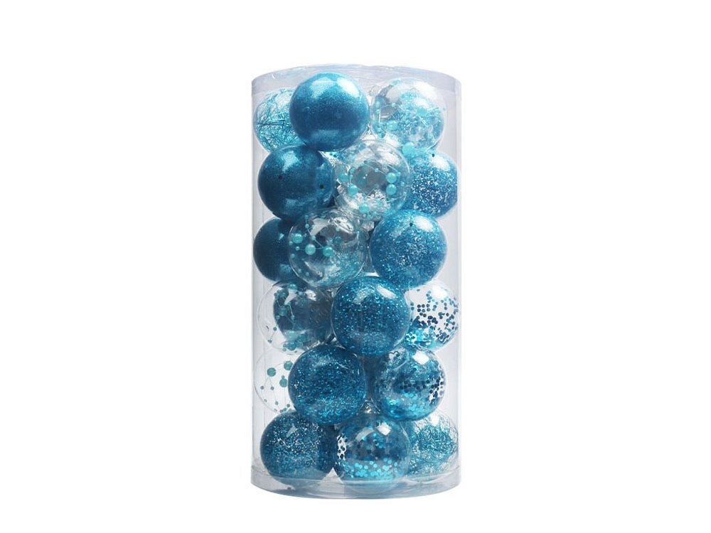 - クリスマスツリーオーナメント ボール型 30個セット ブルー クリア 透明 ラメ シンプル 装飾 Xmas Christmas デコレーション インテリア