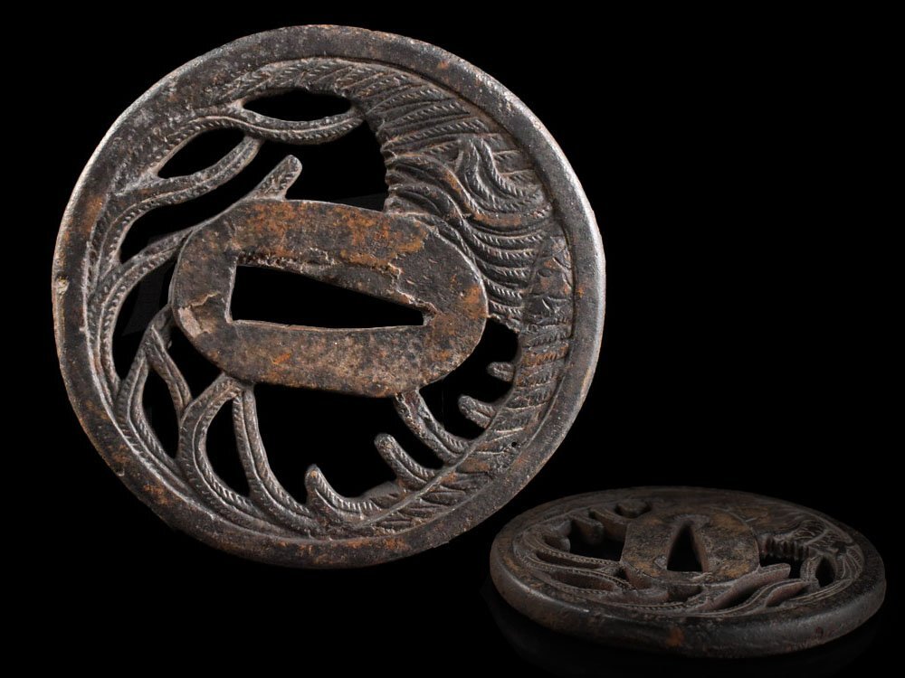 - 【雲】某収集家買取品 時代 内輪図透 波透 丸形 鍔 古美術品(鐔 刀装具 古鉄 日本刀 旧家蔵出)Y7174 LTghuy