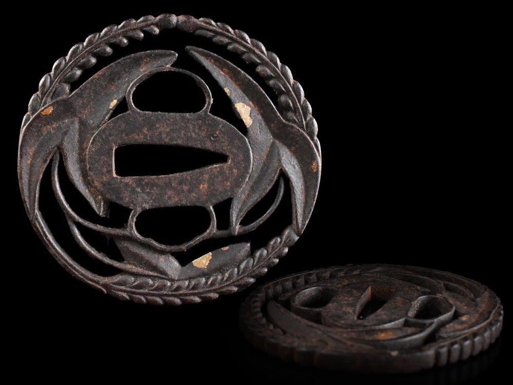 - 【雲】某収集家買取品 時代 沢潟透 丸形 鍔 古美術品(鐔 刀装具 古鉄 日本刀 旧家蔵出)Y7179 LTpoinm