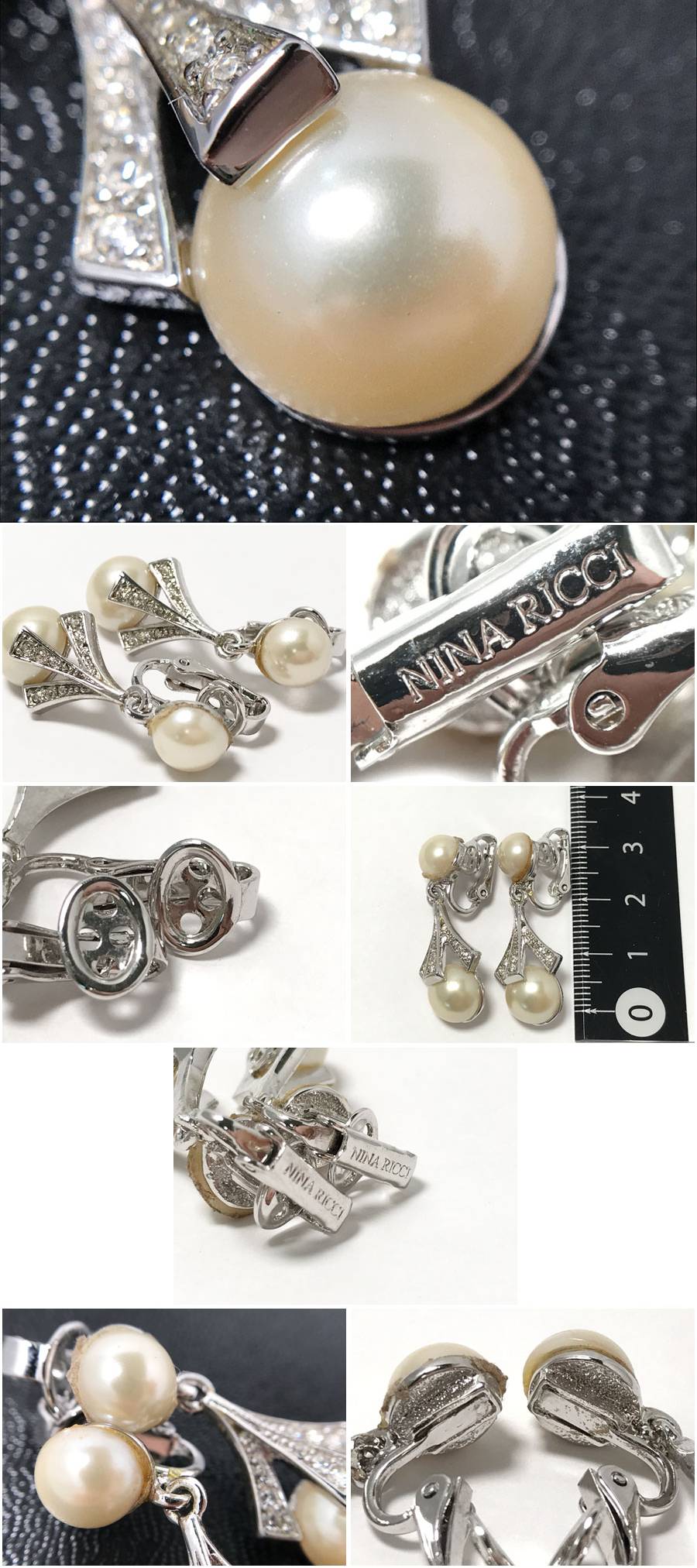 - ◆イヤリング3種おまとめ D'ORLAN ドーラン フェイクパール ハート・NINA RICCI ニナリッチ フェイクパール ブルーストーンスクエア