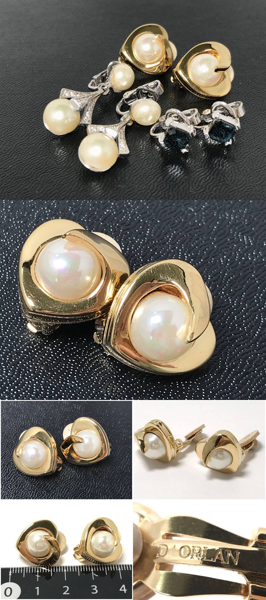 > ◆イヤリング3種おまとめ D'ORLAN ドーラン フェイクパール ハート・NINA RICCI ニナリッチ フェイクパール ブルーストーンスクエア