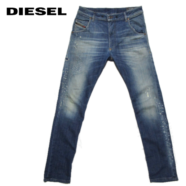 > 【ディーゼル】 ダメージ・リペア・汚れ加工 ジョグジーンズ インディゴ レザーパッチ サイズ30 DIESEL ディーゼルジャパン