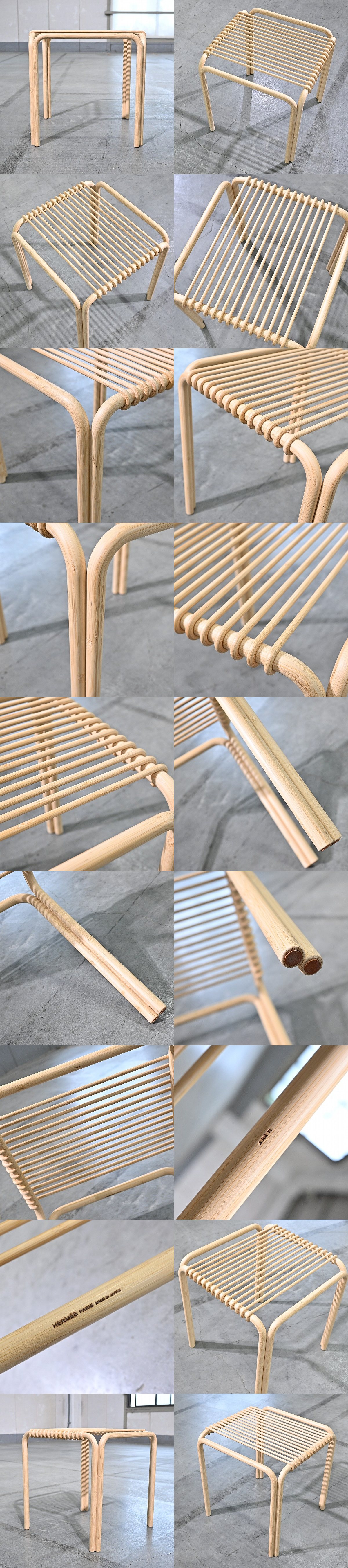 > Hermes 150万「Karumi/カルミ」スクエアスツール 椅子 チェア リビング サロン アルヴァロ シザ Alvaro Siza 竹 日本製 バンブー エルメス