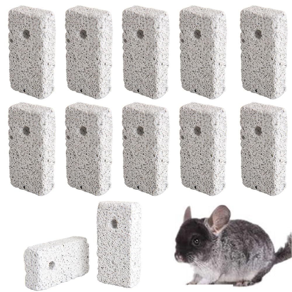 > 【数量限定】【12個入】 長方形 天然の火山石 噛む石 歯磨き ハムスター、ウサギ、チンチラなどのげっ歯類に最適 チンチラ BIU