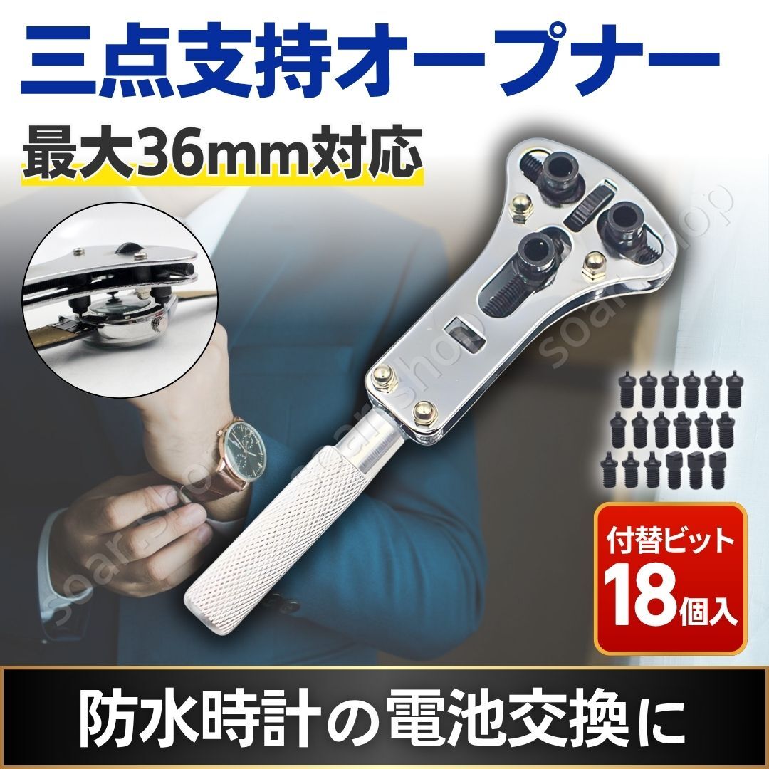- 3点支持 オープナー 時計 電池交換 修理 工具 裏蓋 36mmまで 開閉 防水時計 腕時計 スクリューバック 18ビット 調整式 カバーケース外し