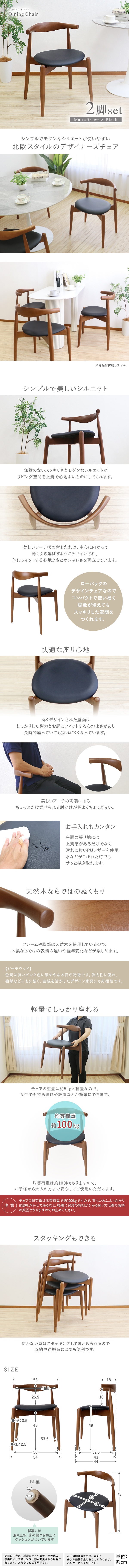 - 送料無料 ダイニングチェア スタッキングチェア 北欧チェア 2脚セット ビーチウッド マットカラー 耐荷重約100kg 完成品 無垢材 天然木