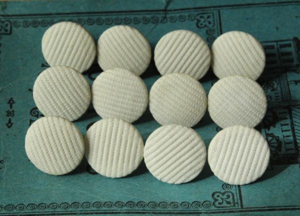 - 即決 布くるみボタン 12個 φ13mm ファブリック ホワイト 白 パーツ フランス輸入 ヴィンテージ