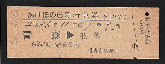 - ◆硬券切符◆特急券 あけぼの6号 青森→弘前