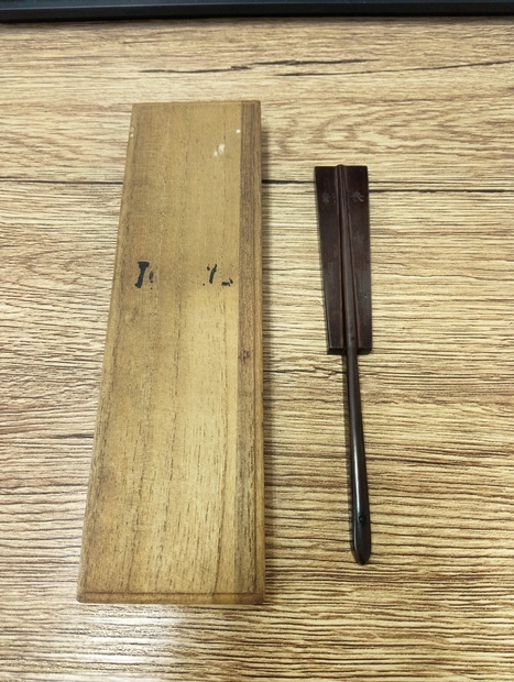- 管N1029001 帝国在郷軍人会武庫郡連合分会 表彰 文鎮? 扇型 箱付き アンティーク コレクション 約156g