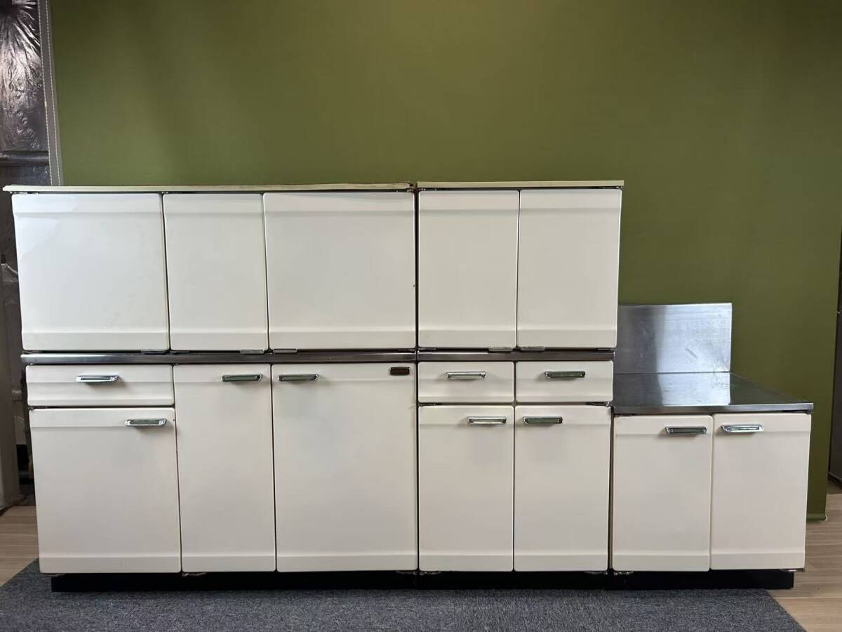 - 【中古】SUNWAVE ホーロー製システムキッチン・流し台(幅120cm)・コンロ台(幅60cm)・吊戸棚の合計5点セット★直接引取or当社便配達限定