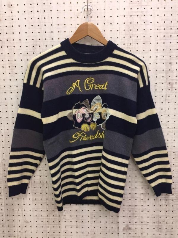 - A GREAT FRIENDSHIP オールド レトロ かわいい 犬 ワンちゃん アニマル 刺繍 キャラクター ボーダー レディース 長袖ニット セーター