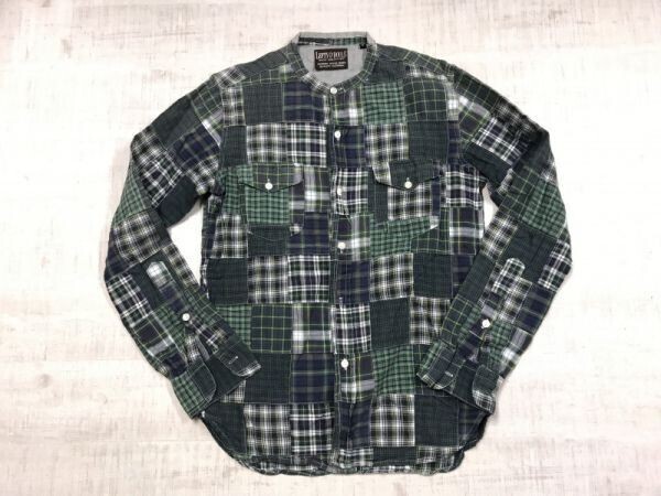 > LEFTY O'DOULS バンドカラー マチ付き パッチワーク ブラックウォッチ チェック リビルド アメカジ ストリート古着 長袖シャツ メンズ M 緑