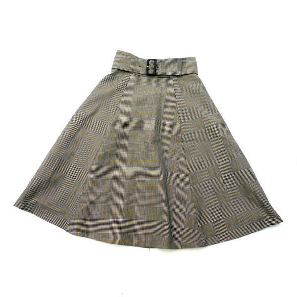 - ★ マイストラーダ チェックフレアースカート 千鳥格子 ベルト付き ブラウン サイズ38 37333100 (0220401860)