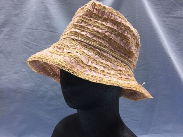 - オールド レトロ ガーリー 麻編み×ギンガムチェック バケットハット 帽子 レディース 麻×ポリエステル M ピンク