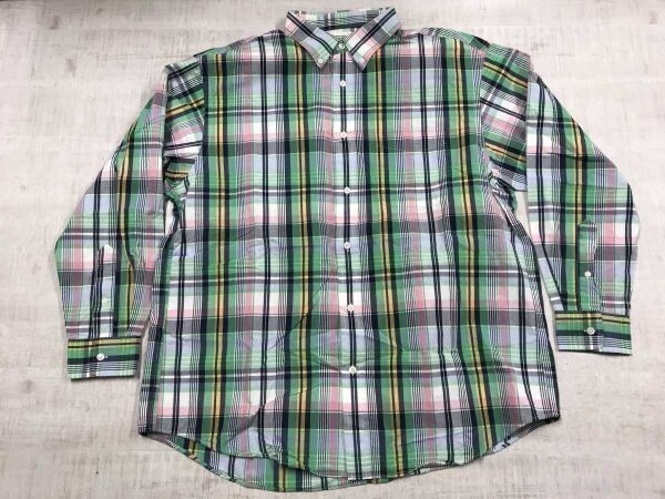 > ジーユー GU パステル マルチカラー ストリート ビッグシルエット ボタンダウン マドラスチェック 長袖 シャツ メンズ L 緑