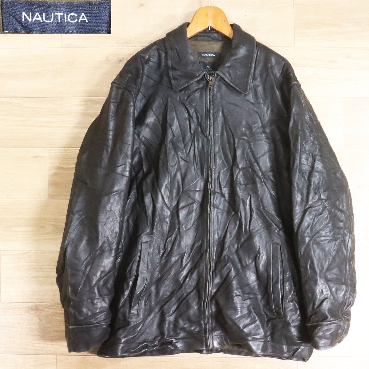 - E8S/Y6.17-8 NAUTICA ノーティカ 本革 レザージャケット スイングトップ レザーブルゾン ライダース メンズ XL ブラック 古着
