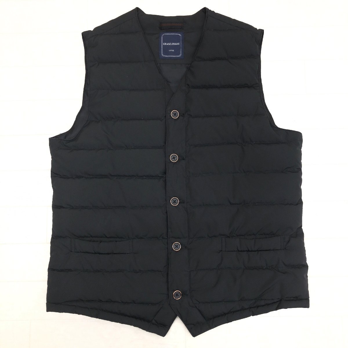 > ●GRAND PHASE グランフェイズ Vネック キルティング ダウンベスト L 黒 ブラック インナーベスト ダウンジャケット 防寒 国内正規品 紳士