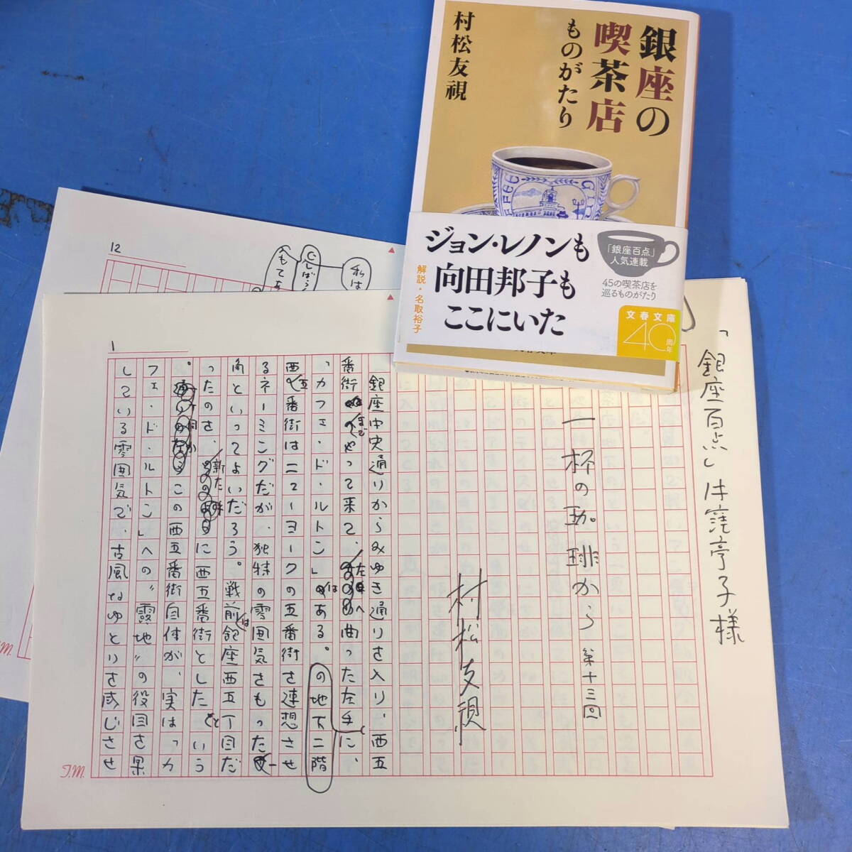 - 村松友視肉筆原稿「一杯の珈琲から 『カフェ・ド・ルトン』『野の花」』」12枚完 銀座百点《真作》kankando
