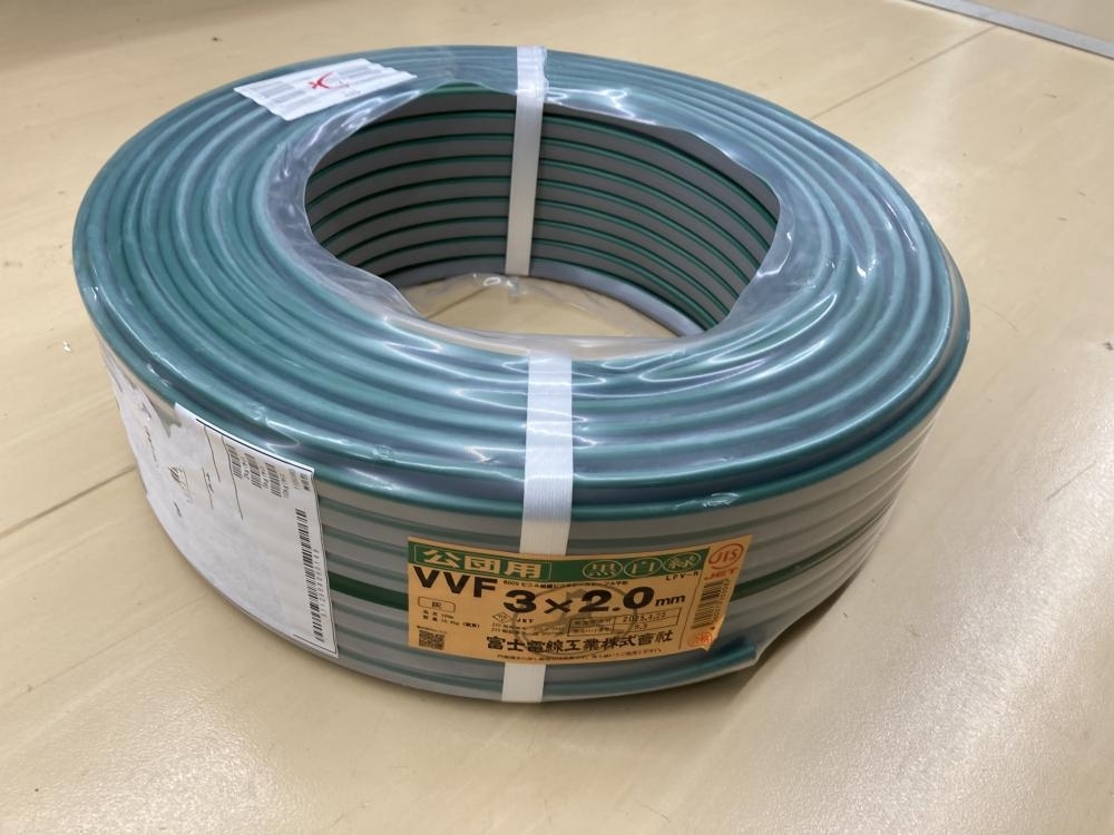 > 022●未使用品・即決価格●富士電線 VVFケーブル 3×2.0 黒白緑 伝票直貼り発送です。