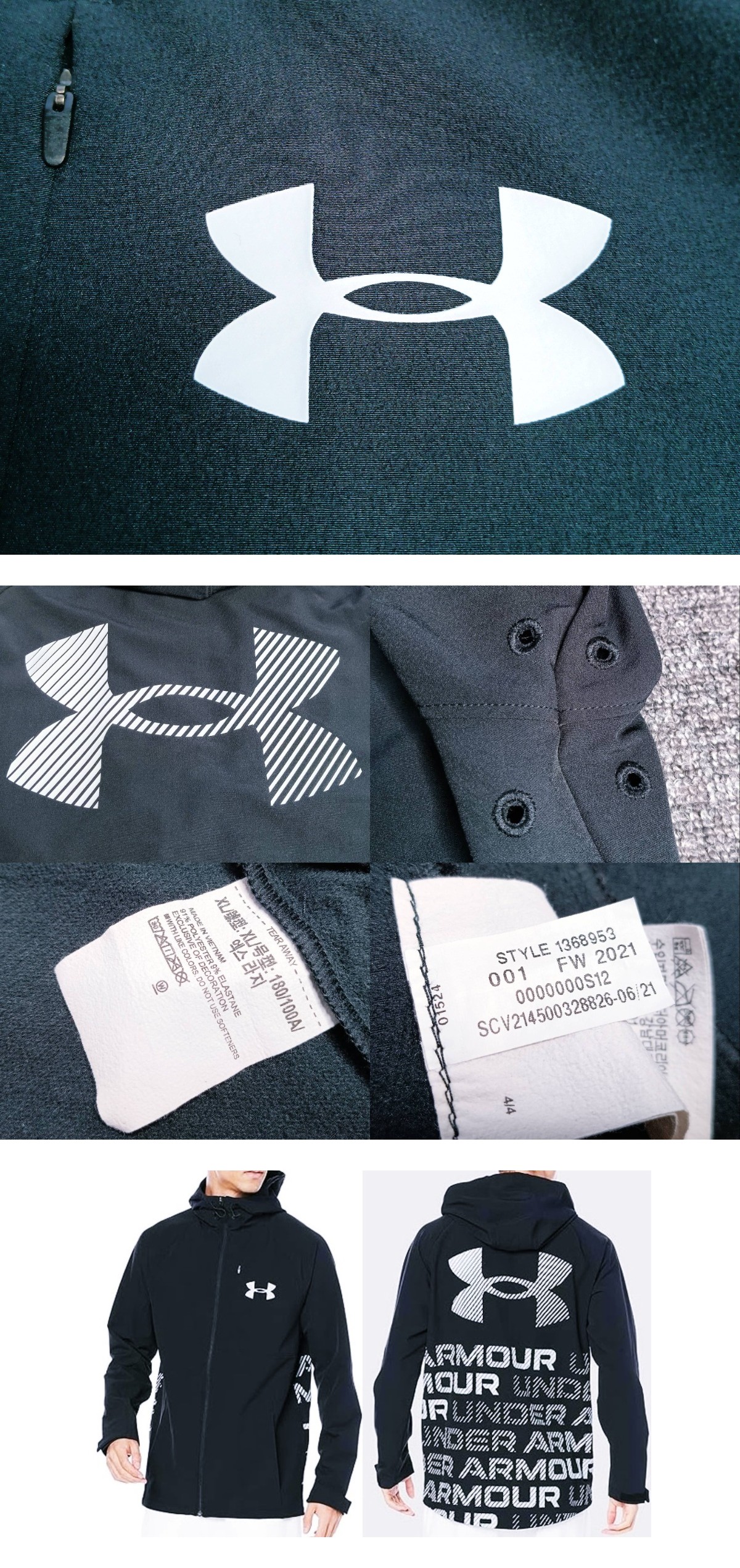 - 新品!大きめサイズ!価格13200円 UNDER ARMOUR アンダーアーマー 背中ロゴ UAブラッシュドウーブン フルジップフーディ(黒XL-2XL相当)