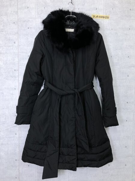 - AIMER エメ レディース 取り外し可 襟フォックスファー ベルト付き 比翼ボタン ダウン ジャケット コート 9AR 黒