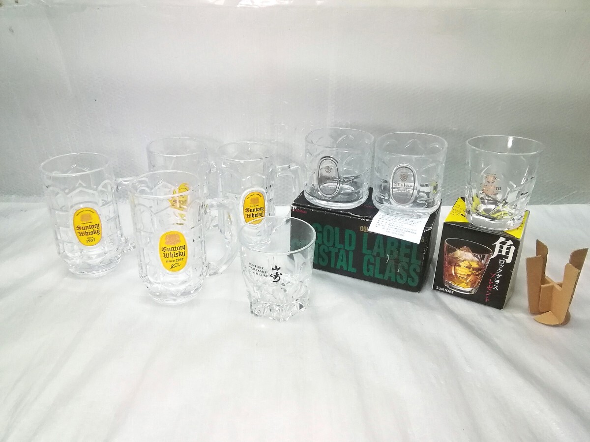 - SUNTORYジョッキ 山崎 ロックグラス ウイスキーグラス まとめて8点 角ロックグラス 亀甲グラス 未使用+中古品 ⑧