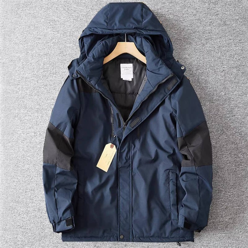 - 国内未販売 新品 メンズ 中綿ジャケット 厚手 アウトドア フード付き 防風 撥水 防寒 冬用 アクティブジャケット 防寒/紺色T9107-L