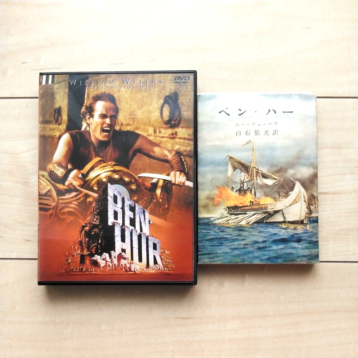 - ■『ベン・ハー(Ben Hur)新潮文庫&DVD』2点一括。前者LewWallace著。白石佑光訳。昭和44年第19刷カバー。後者Jacket裏面を御覧下さい。