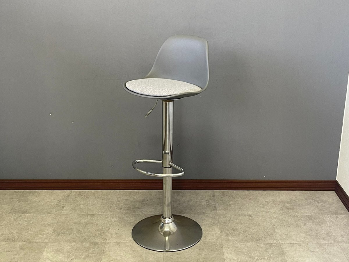 > 【美品/動作良好】240807012- 昇降式 カウンターチェアー グレー+ファブリック 1脚 メッキ脚 組立式 椅子 おしゃれ ハイチェア ★一点物