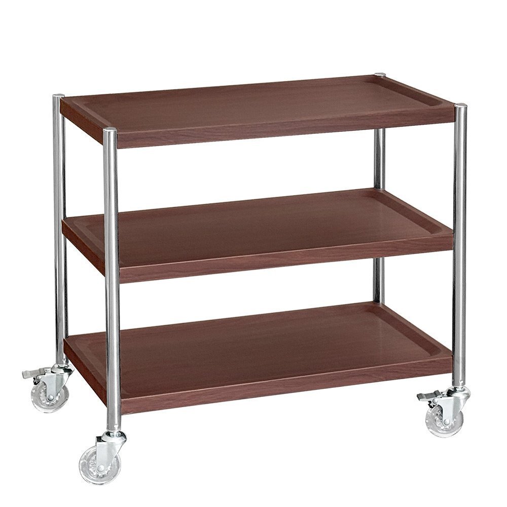 - 【新品】業務用 ステンレスキッチンワゴン クリアキャスター木目調 ダークブラウン 3段L フラットタイプ PRO-L3F-CDB-SL