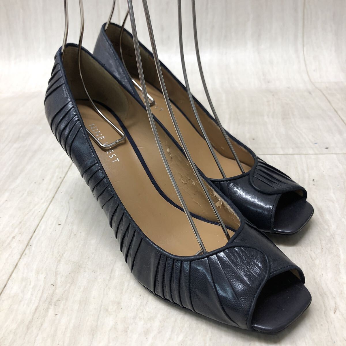 - M324 FN-251010-1552 NINE WEST ナインウエスト スクエアトゥ レザーパンプス パンプス ウェッジソール ネイビー レディース 7 2/1M